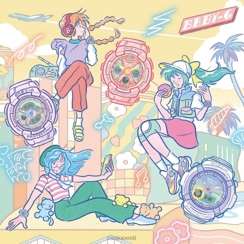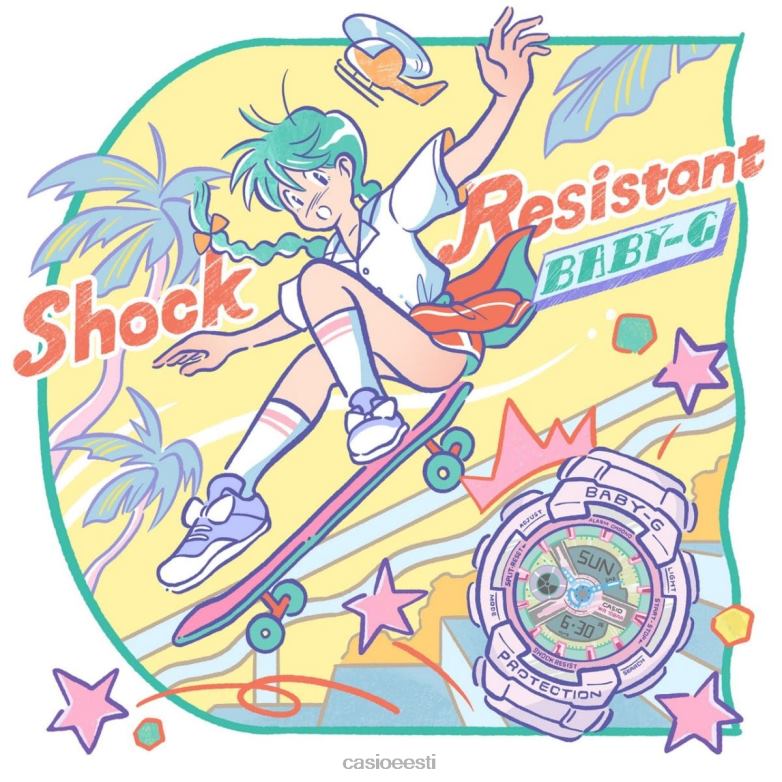 Pastell ja metallik – valige oma aktiivse eluga kaasas käimiseks armas ja igapäevane mitmevärviline baby-g. Pastelsetes toonides värvide blokeerimine ja gradatsioon annavad nendele mudelitele naiseliku popi ning laia valikut pehmeid toone ühendab võluv disain.osutitel, indeksmärgistel ja muudel sihverplaadi osadel on metallik viimistlus, mis lisab peent läiget ning loob ainulaadse koosluse mati korpuse ja rihmaga. Need kellad on rohkem kui lihtsalt ilusad, neil on ka suurepärane igapäevane funktsionaalsus ja põrutus vastupidav konstruktsioon ja veekindlus kuni 100 meetrini.väljendage oma müstikat selle vapustava kontrastiga vastupidavast metallist ja pehmetest pastellidest.