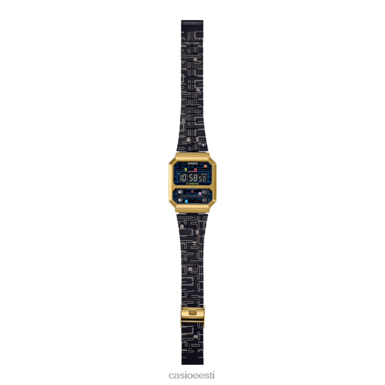 Tere tulemast pac-man oma ellu selle erilise casio vintage ja bandai namco meelelahutusega. koostöö. ära jäta kasutamata võimalust lisada oma kollektsiooni väga eriline a100. sukelduge ühe maailma esimese kassahiti videomängu nostalgiasse. kellaklaasil olevad detailid vihjavad põnevale tagaajamisele, kui pac-man, ümbritsetud ruudukujulises LCD-ekraaniga kummitusmajas, on valmis jooksma. Lasergraveering mustale ioonkattega metallribale loob mängu labürinti. mäng algab kella sihverplaadi kohal pac-man söövate täppidega, kui ta kummituste eest põgeneb, ja jätkub sihverplaadi all pärast seda, kui ta on neelanud energiagraanuli ja pöördunud tagasi, et neid jälitada. Korpuse tagaküljele on graveeritud mängu algne graafika. pakend on loodud klassikalist mängusaali läbi ja lõhki esile kutsuma. sööge ära see tõeliselt ainulaadne ajanäitaja ja äratage pac-mani vaim uuesti ellu!pac-man & Bandai namco Entertainment Inc.