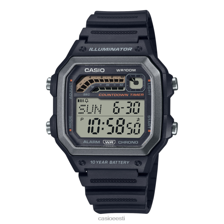 1990. aastate spordidisainist inspireeritud näo ülaosas on kaks riba ja ring, mis kuvavad kolme erinevat taimerit – 1/20-sekundiline stopper ülaltoodud värviribal, kümnesekundiline stopper alloleval ribal ja 1-minutiline stopper paremal asuval ringikujulisel ekraanil.Need spordikellad on alati kasutusvalmis, 10-aastane aku, veekindlus kuni 100 meetrini, LED-valgustus, taimer ja äratus.