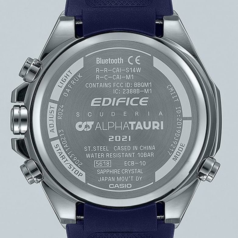 Ehitis scuderia alphatauri piiratud väljaanne | nutitelefoni link | koostöömudel scuderia alphatauri f1 meeskonnaga hoonest. Sihverplaadi jaoks on kasutatud kõrgekvaliteedilisest süsinikkiust valmistatud 6k kuiva süsinikku. 6k süsinikku kasutatakse ka f1 autode tiibade ja põrandate jaoks. värvimine põhineb meeskonna tumesinisel värviskeemil. meeskonna logo on sihverplaadil, korpuse tagaküljel ja ribahoidjal. see on varustatud funktsioonidega, mis on välja töötatud meeskonna tagasiside põhjal. ecb-10 nutitelefoni lingi mudelil põhinev analoog/digitaalne kombinatsioonmudel. see on varustatud ajakava taimeriga, mis toetab meeskonnaliikmeid, kes peavad võistlusnädala jooksul minut-minutilise ajakava haldama. see mudel toetab meeskonda sekundi murdosa täpse maailmaaja funktsiooni kaudu.