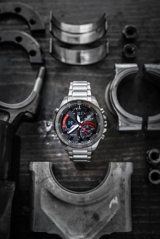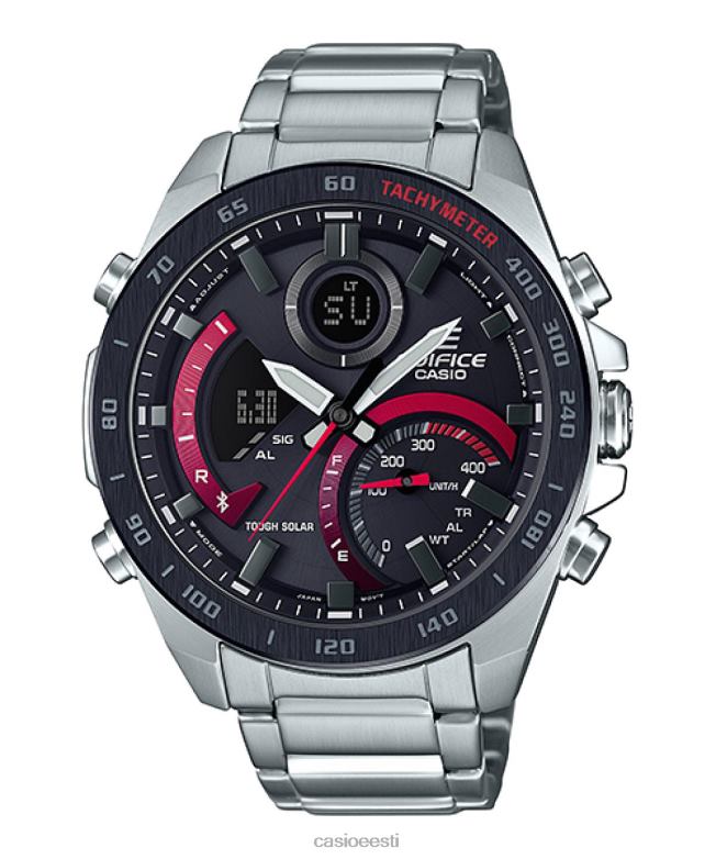 nutitelefoni link | digitaalse/analoogse kombinatsiooni mudel edifice nutitelefonide lingi seeriast. sportlik disain, mis kasutab mustal põhivärvil punast aktsentvärvi. multifunktsionaalne mudel, mis kuvab lisaks nõela osutile ka erinevat tüüpi teavet lihtsalt arusaadaval viisil LCD-ekraanil. kuvab kellaaega sekundi murdosa täpsusega, ühendades selle Bluetoothi kaudu nutitelefonidega, ja on varustatud maailma ajaga, mis võimaldab kandjal hõlpsasti valida umbes 300 linna hulgast. suur sisemine ketaskell kella 4 poolel on kiiruse indikaator. ringiaegade mõõtmisel kuvatakse määratud distantside alusel keskmist kiirust näitav märk. varustatud täisautomaatse LED-tulega, mis valgustab sihverplaati ja vedelkristallkuvarit randme lihtsa kallutamisega, et tagada öösel nähtavus.