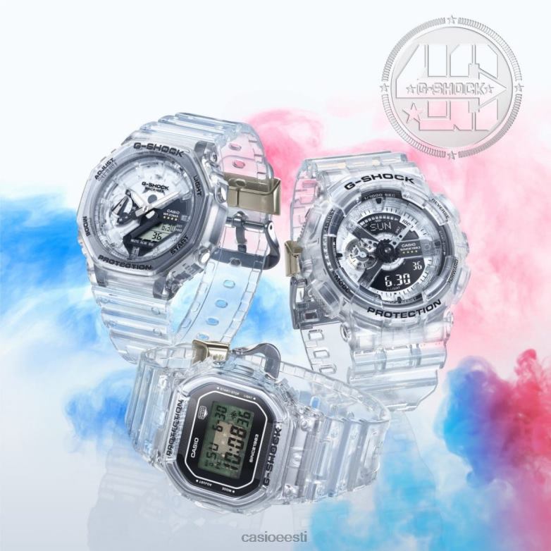Väljendage end selgelt g-shocki 40. aastapäeva selge remiksivalikuga – populaarsed g-shocki kujundused, mis on dekonstrueeritud läbipaistvate komponentidega, et saavutada seni selgeim välimus. Läbipaistvad materjalid bändile, ümbrisele, sihverplaadile, LCD-le , ja nupud pakuvad mooduli substraadi telgitagust vaadet, millele on trükitud g-tähis ja g-shocki logo. Korpuse tagaküljel on eric hägukujuline 40. logo ja riba silmus on graveeritud nelja tärniga, mis tähistab seda erilist tähtpäeva. need detailid ja läbipaistvast klaaskiuddiamiidist valmistatud läbipaistva korpuse esmakordne kasutamine tagavad ainulaadse disaini, mis väärib erakordset piiratud väljalaskega g-šoki. uus valik sisaldab kellasid, mis on modelleeritud mitme ikoonilise g-shocki ajanäitaja järgi: kõige esimene g-shock, dw-5000; klassikaline digitaalne dw-5600; dw-6900 eristuva esinupu disainiga; või ga-2100/gma-s2100 või ga-110/gma-s110, mida saab kanda eraldi või sobiva komplekti osana. Läbinähtav ümbris: dw-6940rx, ga-114rx, gma-s114rx-läbivaatusketas: dw-6940rx, ga-114rx, gma-s114rx, ga-2140rx, gma-s2140rxsee-through lcd*: dw-5040rx-nupp, see-5040rx, 4-0rx-9-4-rx, ga-114rx, gma-s114rx*digitaalekraani võib teatud vaatenurkade korral olla raske lugeda LCD-ekraani jaoks kasutatavate läbipaistvate materjalide tõttu.