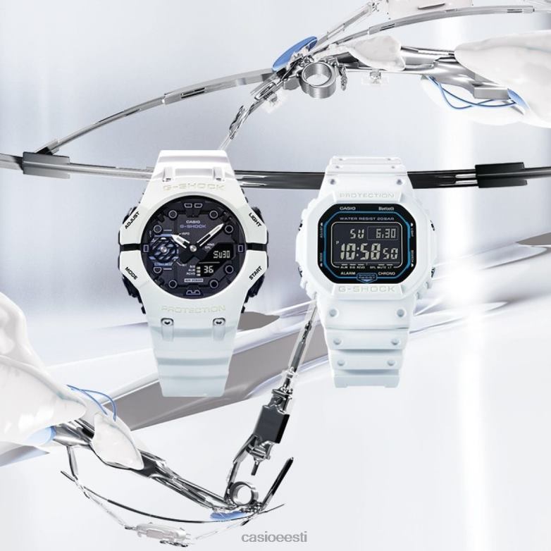 Rännake ajas kaardistamata maailmadesse julge disainiga, mis viib teid lähituleviku ulmeelamuste juurde. Ulmelehtedest inspireeritud karge ja puhas valge kujundus on rõhutatud sinise ja lilla varjundiga. raamile on prinditud pimedas helendav värv, mis muudab g-shocki logo pimedas nähtavaks.Valige klassikalise digitaalse dw-b5600, uue digitaalse-analoogkombinatsiooni ga-b001 ja kapsel-tough g vahel -b001. kõik siduda oma nutitelefoniga Bluetoothi kaudu.