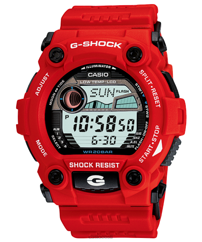 G-shockist, kellast, mis tõi isiklikule ajamõõtmisele võrreldamatu vastupidavuse, pärineb kollektsioon mudeleid, mis pakuvad teatud tasemel kaitset. need kellad on disainitud ja konstrueeritud nii, et neist saaksid partnerid inimestele, kellele meeldivad nende tegevused karmid ja karmid. Peamised funktsioonid hõlmavad nelja suurt raami kruvi ja väljaulatuvaid pindu, mis jagavad kella kuju kuueks osaks, et luua moekas disain. nupud on ühed suurimatest saadaolevatest g-shocki valikus, et neid oleks lihtne kasutada. Madala temperatuuritaluvus võimaldab töötada isegi väga külmades tingimustes, samas kui kuu- ja loodete graafikud pakuvad olulist teavet meresõiduhuvilistele. suur LCD on jagatud osadeks, mis muudavad teabe hõlpsaks leidmiseks ja lugemiseks alati, kui seda vajate. See 5-värviline valik pakub ülimat lihtsat kasutamist ja lugemist.
