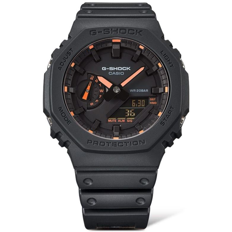 Tõsta mattmusta värviga eriline disain, mis on esile tõstetud neoonaktsentidega. ga-2100 kaheksanurkne kuju ja voolujooneline disain lisavad tekstuuriga mattmusta ja erksa neoonvärvi, et saada stiilselt lahe uus välimus. Fosforestseeruva värviga tunni- ja minutiosutajad jäävad pimedas nähtavaks, et hoida teid mängus terve päeva ja öö.