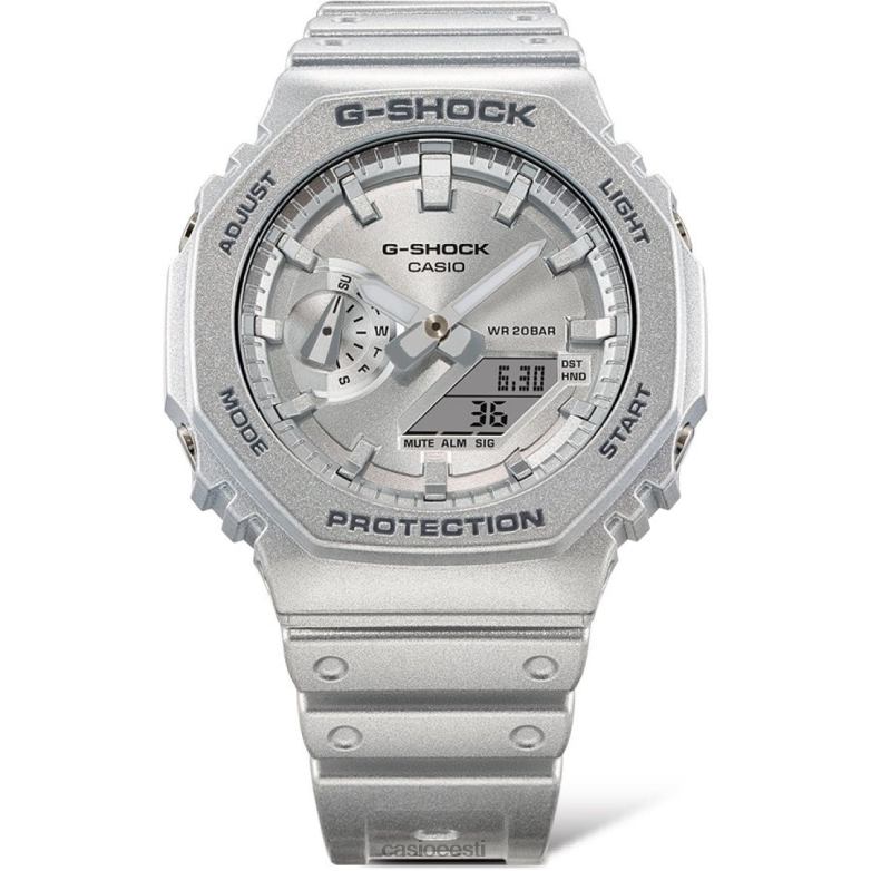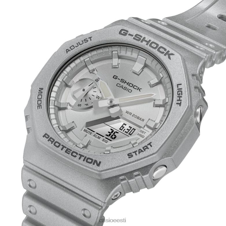 Tutvustame g-shock ga-2100ff-8a – ajanäitajat meie tuntud unustatud tulevikukollektsioonist. see mudel ühendab meisterlikult retrofuturismi ja kaasaegse disaini, pakkudes ainulaadset visuaalset kogemust, mis ulatub tagasi klassikalise ulme esteetika juurde. ga-2100ff-8a, mis on kaetud metallilise hõbedase värviga, näitab g-shocki pühendumust uuendustele ja disainile. . sihverplaadi ümmargune juuksepiir on kaunilt kontrastiks sädeleva korpuse ja raamiga, andes kellale selgelt eristuva ja kütkestava välimuse. Kuid ga-2100ff-8a ei seisne ainult välimuses. g-shocki vaimule truuks on see ehitatud nii vastupidavaks ja töökindlaks kui ka stiilseks. see kell on enam kui võimeline toime tulema igapäevaelu karmusega, jättes samas tugeva stiili. astuge meie unustatud tulevikukollektsiooni g-shock ga-2100ff-8a abil ajamõõtmise tulevikku. see pole lihtsalt käekell; see on mineviku kujutluste ja tulevaste uuenduste suland.