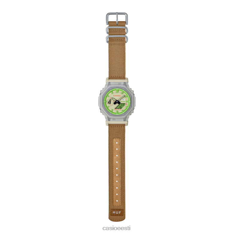 Liituge suurejoonelise pidustusega g-shocki ja huf-i vaimus, mis on pühendunud tänavapildile ja pidevale piiride kompamisele. ga-2100huf-5a tähistab huf-brändi 20. aastapäeva. See koostöö viib populaarse kaheksanurkse ga-2100 tossukultuurist inspiratsiooni saanud uues suunas. ehitatud eklektilise materjalikombinatsiooniga – alates vaigust ja metallist osadest kuni rihma jaoks mõeldud riideni – kellal on sihverplaat, millel on hufi laimirohelise ja oranži toonid. ümbrise tagaküljele on graveeritud ka kaubamärgi 20. aastapäeva logo. San Francisco tänavatest inspireeritud omanäolises pakendis on huf disaininud ajanäitaja, mis kehastab tema kaubamärgi originaalsust ja isegi väikseimad detailid toovad selle ainulaadse maailmapildi ellu.hufhuf asutas 2002. aastal professionaalne rulataja Keith Hufnagel. Alates selle loomisest on huf arenenud sõltumatuks esmaklassiliste rõivaste, jalatsite ja rulatoodete tootjaks, mis kehastab endas müügilettikultuuridest, millest see on loodud.