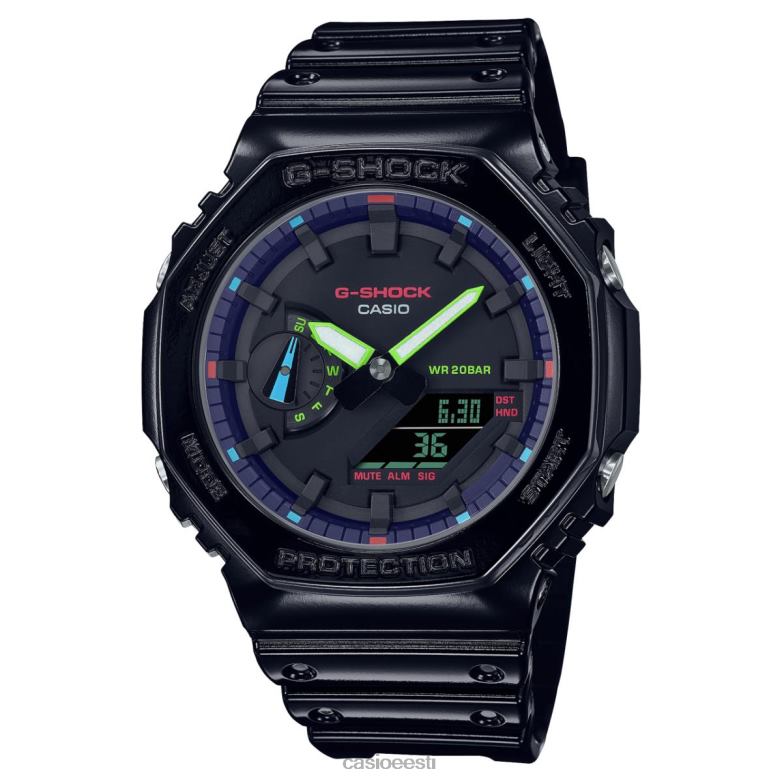 Astuge tutvuma virtuaalse vikerkaarevalikuga – uurige värvilist spektrit, mis tekib siis, kui kübertehnoloogilise mängumaailma esteetika kohtub g-shocki püüdlustega ülima sitkuse poole. Äärised ja ribad toovad kaasa läikiva musta värvi, samal ajal kui nägudel on vikerkaare aurukiht. ja mitmevärvilised kujundused. Tulemuseks on rida julgeid pilke jahedate värvidega prismades, mis valgustavad pimedust, mis muserdab igas moepildis.