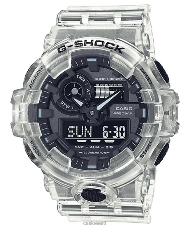 G-Shockist, vastupidavuskelladest, mis arenevad pidevalt edasi lõputu jõupüüdluse nimel, on skeletiseeria mudelid valmistatud poolläbipaistvatest vaiguosadest. värvus on selge valge alusega. ga-700 dünaamilisel 3D-näokujundusel põhineval skeletiseeria mudelil on stiilne värv, mis muudab selle sobivaks moekaubaks.
