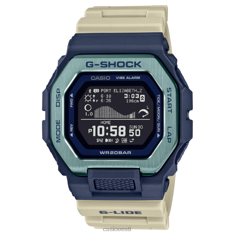 sõida eilsetel lainetel, püüdke kinni tänapäeva lainetest ajas rändavas g-lide.gbx-100 nutitelefoniga ühendatud ajanäitajad, mis rändavad tänapäeva värvilise surfipaleti ja nostalgilise ühevärvilise värvi vahel, mis on inspireeritud mustvalgetest fotodest surfamisest päevad möödas. Seadistage spetsiaalne nutitelefoni rakendus ükskõik millisesse 3300 surfikohast üle maailma, et kontrollida loodete ja päevavalguse tingimusi just seal, kus te olete. lai kella sihver koos suure eraldusvõimega pikslite (mip) LCD-mäluga annab selge ülevaate loodete graafikutest, kuu vanusest, tõusude/mõõnade kellaaegadest ja tasemetest ning päikesetõusu/loojangu kellaaegadest – seda kõike ühe pilguga.