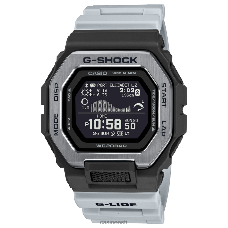 sõida eilsetel lainetel, püüdke kinni tänapäeva lainetest ajas rändavas g-lide.gbx-100 nutitelefoniga ühendatud ajanäitajad, mis rändavad tänapäeva värvilise surfipaleti ja nostalgilise ühevärvilise värvi vahel, mis on inspireeritud mustvalgetest fotodest surfamisest päevad möödas. Seadistage spetsiaalne nutitelefoni rakendus ükskõik millisesse 3300 surfikohast üle maailma, et kontrollida loodete ja päevavalguse tingimusi just seal, kus te olete. lai kella sihver koos suure eraldusvõimega pikslite (mip) LCD-mäluga annab selge ülevaate loodete graafikutest, kuu vanusest, tõusude/mõõnade kellaaegadest ja tasemetest ning päikesetõusu/loojangu kellaaegadest – seda kõike ühe pilguga.