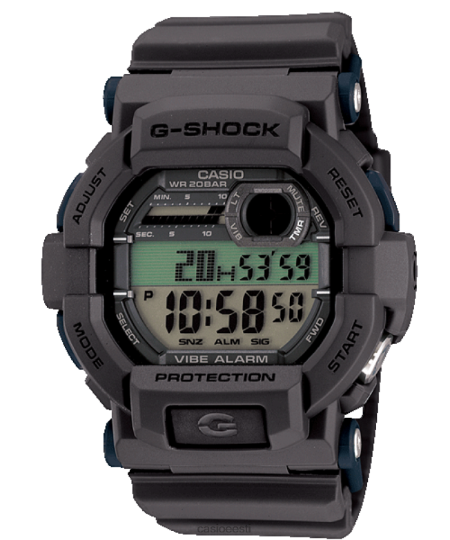 Vibratsioonihoiatus see uus g-shock on loodud ja loodud spetsiaalseteks tumedateks salajasteks missioonideks, mis nõuavad midagi lisa. Taimeri funktsioonil on suur, spetsiaalselt disainitud kergesti tuvastatav spetsiaalne nupp kiireks ja kindlaks tööks ka kõige raskemates tingimustes. kui taimer jõuab oma pöördloenduse lõppu, saate valida, kas teid hoiatatakse vibratsiooni või helisignaali ja LED-välgu abil. kella tagaosa spetsiaalne amortisaatori disain aitab tagada, et vibratsiooni tunneksid käed. Suure heledusega LED-i saab seadistada süttima üheks, kolmeks või viieks sekundiks ning automaatse valgustuse funktsioon paneb näo valgustama alati, kui kell on lugemiseks näo poole kallutatud.