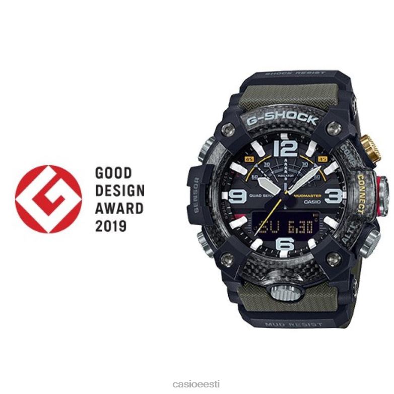 See on g-shock mudmasteri seeria mudel, mis on mõeldud kasutamiseks äärmuslikes keskkondades, kus on killustikku, mustust ja prahti, ning kasutab süsinikmaterjale. kõrge jäikuse süsiniku kasutamine korpusel hoiab kahjustused ja deformatsioonid eemal ning tagab kõrge õhutiheduse ja löögikindluse. sellel mudelil on ka filter, mis kaitseb muda sissetungi eest, roostevabast terasest paneeli tagakülg ja klaaskiududega põrutuskindlast peenvaigust valmistatud tagakaas, mis tagab kõrge vastupidavuse tolmu ja muda vastu. raam kasutab ka kolme kihti peent vaiku süsinikkiust sisestustega ja see on kavandatud meenutama kaasaskantavat bensiinikanistrit, mida võib leida maastikusõidukitel. Funktsionaalselt on sellel mudelil kompass, kõrgusmõõtur/baromeeter, temperatuurilugeja ja sammulugeja. Lisaks sellele, et saab hõlpsasti aega korrigeerida spetsiaalse Casio kellade rakenduse abil, on seal palju muid kasulikke funktsioone, sealhulgas missioonilogi funktsioon, misy salvestab rakenduses kellalt saadud kõrguse andmed ja teie nutitelefoni saadud marsruudiandmed. see on vastupidavuskell, mis toetab teid kiirete otsuste tegemisel ja täpsete toimingute tegemisel.