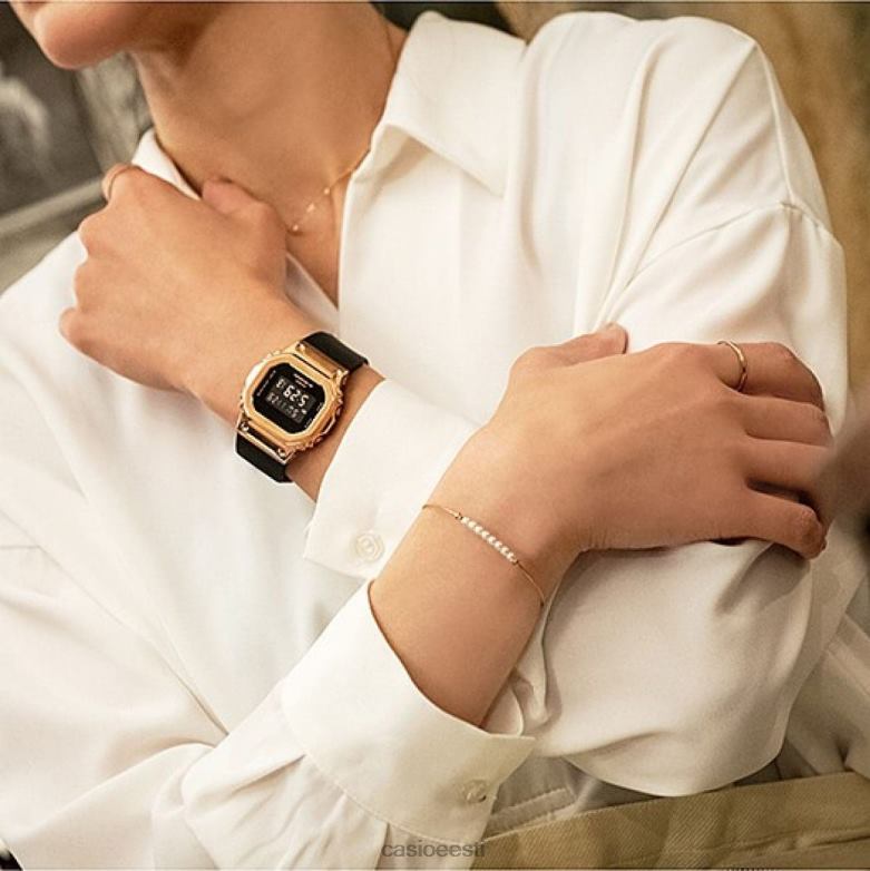 Ikoonilise 5600-seeria väiksema suurusega mudel metallviimistlusega. gm-5600 ruudukujulist disaini, mida on kasutatud alates esimesest mudelist, on vähendatud, et saavutada kerge ja mugav istuvus. raami kate on valmistatud metallist, mis on kaetud roosa kulla ioonkattega, ja rihm on elegantne musta värvi g-shock rihm.