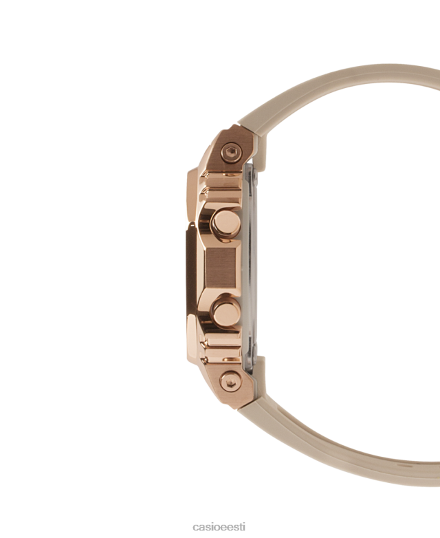 Ikoonilise 5600 seeria väiksema suurusega mudel, mis on viimistletud luksusliku metalliga. gm-5600 ruudukujulist disaini, mida on kasutatud alates esimesest mudelist, on vähendatud, et saavutada kerge ja mugav istuvus. raami kate on valmistatud metallist ja roosa kulla ioonkattega ja rihm on elegantne beežis g-shock rihm.
