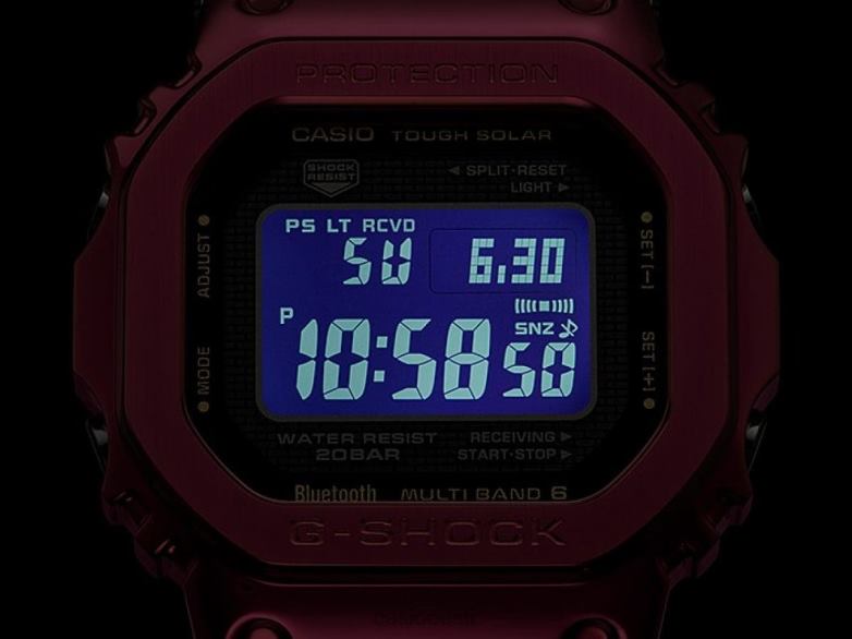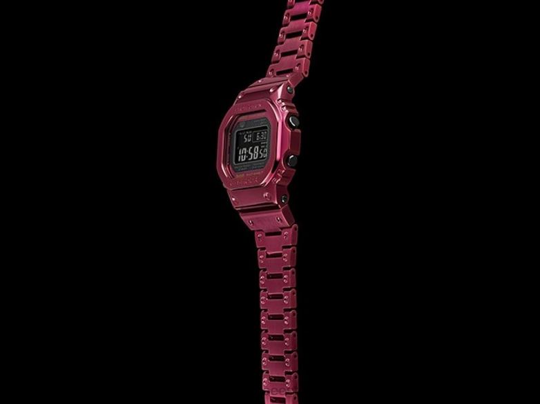 dw-5000c on 1983. aasta originaalmudel g-shock. gmw-b5000 seeria on pärinud oma iseloomuliku ruudukujulise disaini ja saanud täieliku metallitöötluse koos täiustatud funktsioonidega, sealhulgas nutitelefonide ühendamisega. Kellale on antud täismetallist korpus, mille korpuse ja tugeva roostevabast terasest metallraami vahele on sisestatud põrutuskindel peenvaigust polsterdusmaterjal. suure tihedusega kinnitustehnoloogia võimaldab ka kellal oma suurust säilitada. kella tagaküljel on tugev kruviga lukk ja seda on kulumiskindluse tagamiseks töödeldud dlc-ga. Kauni g-shocki kaubamärgivärvi saamiseks on kogu korpusele ja ribale kantud bordeaux ioonplaat. ka nähtavust on parandatud kilelise päikesepatarei ja stn-lcd (vedelkristall) kasutamisega. Funktsionaalselt on sellel mudelil Bluetooth-side ja see saab täpse ajateabe saamiseks linkida spetsiaalse rakendusega. kell on ka täis praktilisi funktsioone, sealhulgas aja korrigeerimise süsteem, mis kasutab standard aja- ja sagedussignaalid (multi-band 6), usaldusväärne toiteallikas vastupidava päikesetehnoloogia, suure heledusega täisautomaatse LED-taustvalgustuse, maailma aja ja nädalapäevade kuvamise näol kuues keeles. see on g-shock mudel, mis jääb truuks oma eelkäijale, kuid läbib täismetallist kujunduse abil täiendavat täiustamist.
