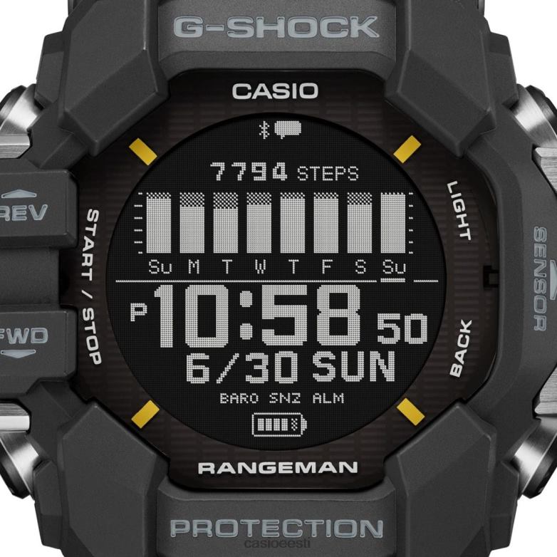 vallutage nõudlik maastik ja tundke end suurepäraselt vastupidava ajanäitaja abil, mis on nii julge ja aktiivne kui ka karm. G-Shock Rangeman gprh1000, mis on loodud töötama ka kõige karmimates keskkondades, on g line'i meistri g-shock rangeman gprh1000 tõeliselt vastupidav välivarustus. . mudakindla konstruktsiooniga, mis hoiab peenest tolmust ja mustusest eemal, on loodud vastu pidama kõige karmimatele tingimustele ja halvimatele ilmastikuoludele. See vastupidav ajanäitaja on varustatud päikeseenergia abil laadimise, pulsikella ja sisseehitatud GPS-funktsiooniga, ja kõrglahutusega, suure kontrastsusega pikslis-mälu (mip) lcd hõlpsaks lugemiseks. Korpust kaitsevad vasakul ja paremal suured metallosad, mis kaitsevad GPS-antenni ja kuut andurit, et edastada seda, mida soovite vajadus mitmesuguste tegevuste järele.matkafunktsioon võimaldab teil liikvel olles kontrollida oma pulssi, et saaksite treeningute ajal jälgida oma füüsilist seisundit.veest maksimumi saamiseks vaadake mõõna- ja tõusude graafikut sport.nautikõik see funktsionaalsus ilma mugavust ohverdamata. pehme uretaanrihm istub mugavalt, mis meeldib teie randmele ja on ülaosa tekstuuriga, nii et isegi märjad sõrmed saavad seda libisemata pingutada. Korpus, raam ja riba on valmistatud biopõhisest vaigust, mis on eeldatavasti aidake vähendada keskkonnamõju. Randmekandja metskassi tegelase siluetiga graveeritud siluett on selle ajanäitaja iga detail näide selle erikellade sarja meistri vaimust.