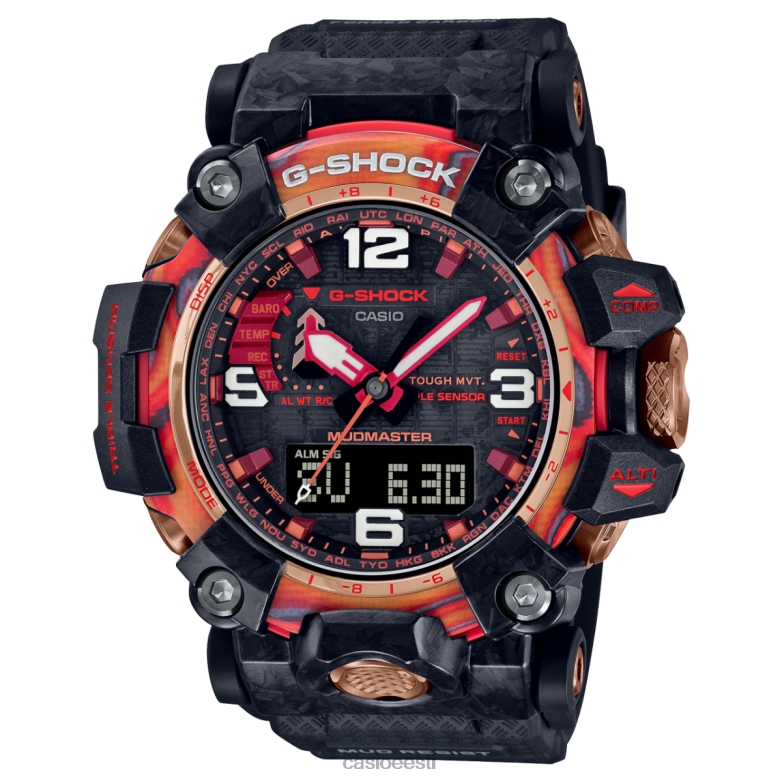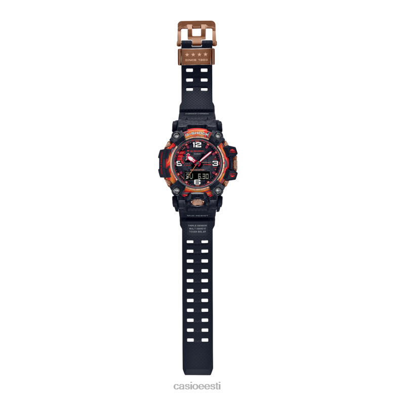 Tutvustame g-shocki 40. aastapäeva plahvatuspunast – tulise värvi purse kahes piiratud väljalaskega ajanäitajas, millega tähistatakse 1983. aasta g-shocki debüüdi 40. aastapäeva. Mtg-b3000 on inspireeritud päikesepõletuse intensiivsest võimsusest ja gwg-2000 mõlemad kiirgavad g-shocki musta ja punast värvi, pakkudes casio parimaid uusi tehnoloogiaid. Mitmevärviline süsiniku sisendiga raam, mis on valmistatud fosforestseeruvaid osakesi sisaldavatest süsinik- ja klaaskiudlehtedest, kutsub esile päikese tohutu plahvatusjõu. pind, mis annab ajanäitaja, mis kiirgab pimedas helendavat ilu. üksikute ja unikaalse mustriga raami komponendid – pole kahte ühesugust – annavad tulemuseks tõeliselt ainulaadsed kerged, tugeva tugevusega kellad. Tõstke see veelgi kõrgemale gwg-2000 esipaneeli komponentidega, mis on valmistatud sepistatud süsinikkiust koos fosforestseeruvate osakestega, mis sobivad kokku pimedas helendavate päikesekiirte mustritega raam. Mõlemal mudelil on sihverplaadile trükitud päikesekiirte muster ja eriline udukujuline disained logo, mis tähistab ümbrise tagaküljele graveeritud g-shocki 40. aastapäeva ja riba aasale graveeritud neli tärni 40 eest. Need hoolikalt kaunid, kordumatult mõjuvad ajanäitajad on täpselt sobivad g-shocki 40. aastapäeva tähistamise alustamiseks.