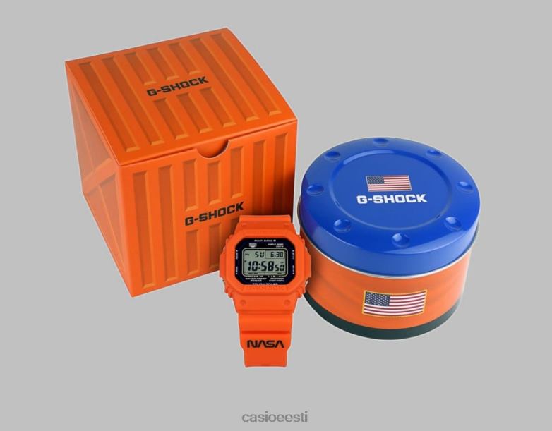 tõuske lendu seadmega gwm5610nasa4, mis on uusim inspireeritud g-shock. see uusim kosmoseuuringuid tähistav mudel on varustatud täiustatud tehniliste võimalustega, nagu vastupidav päikesetehnoloogia ja mitmeribaline 6-aatomiline ajamõõtmine. Uus mudel, mis on kujundatud ikooniliste astronautide kantud oranžide ülikondade järgi, peegeldab seda kuulsat esteetikat üleni oranži ümbrise ja ribaga, mille musta riba kaunistab Ameerika lipp.