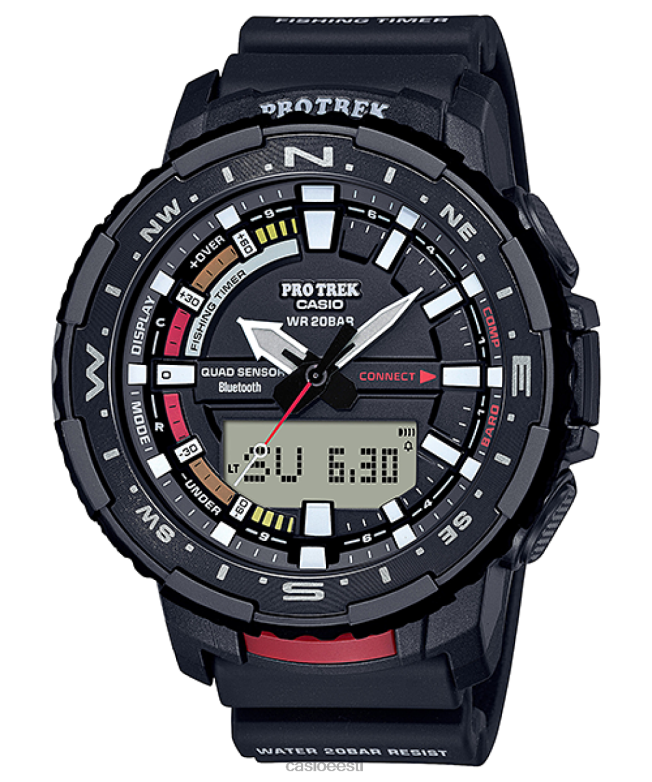 Pro Treki õngitseja prt-b70, millel on 20 baari veekindlus. varustatud optimaalsete funktsioonidega kalastamiseks spetsiaalse pro trek ühendatud rakenduse kaudu Bluetooth-side kaudu. varustatud püügitaimeriga, mis kuvab püügiks ideaalseid aegu ja kala püüdmise tõenäosust, ning funktsiooniga, mis loeb automaatselt püügiaja alguseni. see kuvab spetsiaalse rakenduse lingi kaudu ka loodete graafikuid ja päikesetõusu/loojangu aegu 3300 punktis piki maailma suuremaid rannikuid. see on varustatud ka kalastusmemo funktsiooniga, mis salvestab nutitelefoni asukohateabe põhjal püügikohad rakendusse. see on varustatud ka neljaanduriga, mis suudab mõõta sammude arvu, suunda, kõrgust / õhurõhku ja temperatuuri. võimaldab rakenduses kinnitada kõndimise ajal põletatud kaloreid. võimaldab ka kohandatud sätteid, näiteks seadistust, mis kuvab rakenduses ainult vajalikke funktsioone. peen vaiguümbris ja pehme, väga elastne ureetne riba kasutatakse välisküljel, et vähendada randme koormust. Nähtavuse tagamiseks kasutatakse laia sihverplaati ja suuri noolekujulisi näpunäiteid. sportliku disaini loomiseks kasutatakse põhivärvina tavalist musta.