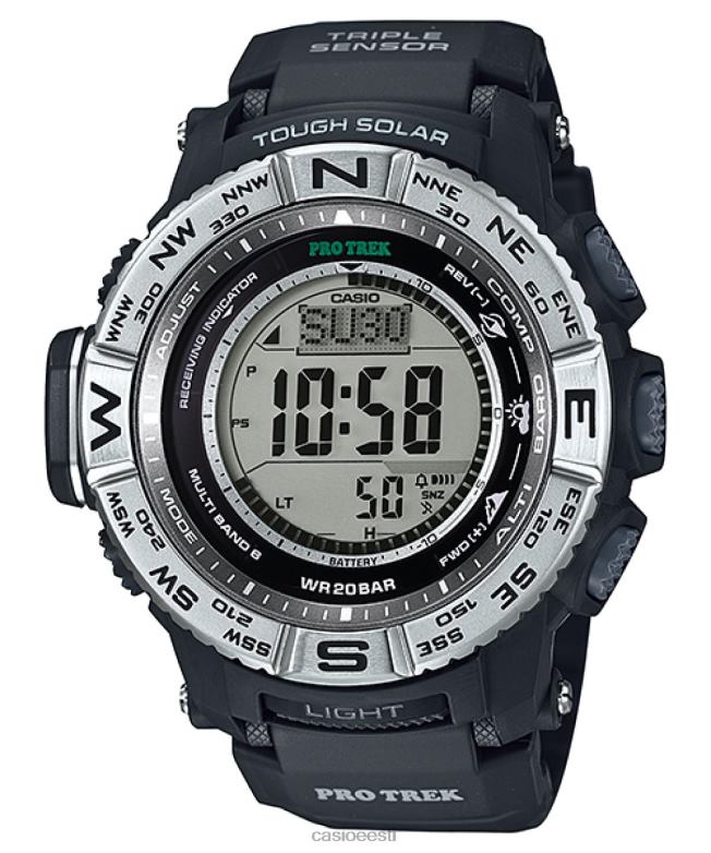 Kolme sensoriga kolmekordse sensori versioon 3, täiustatud casio originaaltehnoloogia, mis võimaldab pakkida varasemate mudelite omadest 95% väiksemad andurid täiesti uut tüüpi kompaktsesse pro trekisse. Vaatamata oma väiksemale suurusele tagavad selle mudeli uued andurid parema lugemise täpsuse ja energiatõhususe. See uus kolmekordse anduri versiooni 3 mudel tagab kõrguse, õhurõhu ja suunanäidud, mis on varasematest mudelitest täpsemad. õhurõhu tendentsi hoiatus hoiatab kasutajat rõhunäitude äkiliste muutuste eest, mis võivad viidata eelseisvatele ilmastikunähtustele. See mudel on veekindel kuni 200 meetrini ja sellel on täisautomaatne LED-ekraani valgustus, mis teeb sellest suurepärase valiku niiskes keskkonnas ja öösel operatsioonid. Roostevabast terasest pöörleva raami saab paigutada nii, et see aitab teil jälgida oma praegusi ja kavandatud laagreid. Nii funktsioonide kui ka välimuse poolest pakub see kolmekordse sensori versioon 3 võimalust valida välistingimustes kasutatavaid ajamõõtmisseadmeid.juures ei saa võita. multiband6 kuue ajakalibreerimissignaali vastuvõtt: Jaapan (2), Ameerika Ühendriigid, Saksamaa, Inglismaa, Hiina vastupidav päikeseenergia tagab stabiilse töö isegi energianäljaste funktsioonide kasutamisel. kolmekordne andur: kompass, baromeeter/termomeeter, kõrgusemõõtja madaltemperatuurikindel (-10oc/14of)