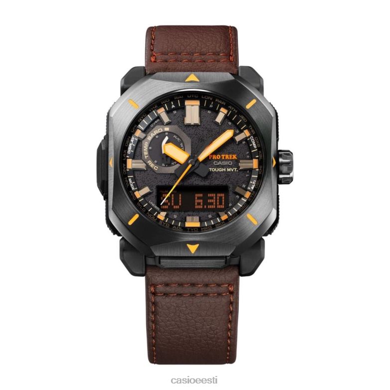 Saate end vabas õhus nautida uue päikeseenergial töötava raadio teel juhitava täpsuse ja keskkonnasõbralike materjalidega, mis on valitud nende keskkonnasõbralikkuse tõttu. Pro treki autentsete välivarustuse sarja loodusesõpradele kuulub nüüd prw6900yl, ellujäämistööriistadest inspireeritud soliidse struktuurse ja funktsionaalse iluga ajanäitaja. See karm ja karm välistiilis ajanäitaja on metallist raamiga, mille servad on järsult kitsenevad, mis meenutab puitkirvest. kella 10 asendis tuletab sisestusnupu näidiku osuti meelde matkanoa tera ja sekundiosuti lõkkeleekide oranži gradatsiooniga. sihverplaadi põhjas on tekstureeritud malmist meenutav pind, mis meenutab Hollandi ahju, koondades disaini, mis kirjeldab kõike, mida bushcrafti juures armastada. Korpus ja vaigukorpuse tagakülg on valmistatud biopõhisest vaigust, mis on keskkonnasõbralik , roheline materjal, mis on kooskõlas pro treki pühendumusega elada harmooniliselt koos loodusega. äsja arendusPrw6900yl leegiaeglustav nahkrihm peab vastu isegi siis, kui seda tabavad lendavad sädemed.